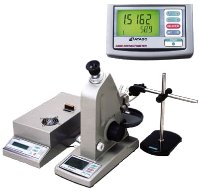 С помощью многоволновых Аббе рефрактометров можно измерять как жидкие, так и твёрдые вещества при различной длине волны, используя специальные интерференционные фильтры. С их помощью могут быть измерены коэффициент преломления или число Аббе при различных длинах волн в диапазоне от 450 нм до 1100 нм. При этом полученные значения будут отображаться на цифровом дисплее. А измерения возможно проводить как в в отражённом, так и проходящем свете. Для измерения в диапазоне 681....1100 нм необходим инфракрасный окуляр. Модель М4 позволяет измерять образцы с более высоким показателем преломления.