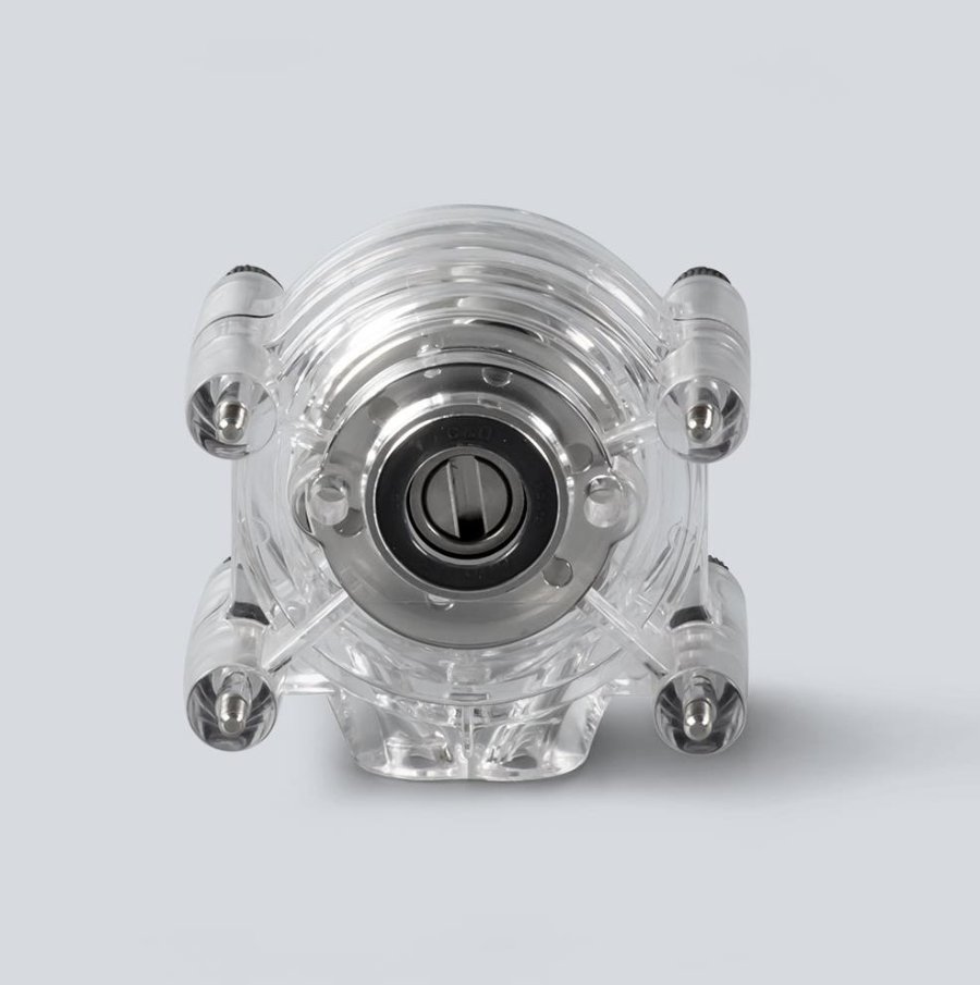 Наиболее распространенная модель головки, которая используется в перистальтически× насоса×, где способ фиксации гибкого шланга сконструирован специальным образом, что позволяет удобно менять шланги, а также использовать шланги с разным диаметром.