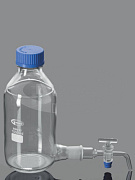 Склянка-аспиратор представляет собой бутыль с соединительной муфтой с резьбой в нижней части, к которой может быть присоединена трубка. Изготавливается из термостойкого и химически стойкого стекла. Применяется для хранения или раздачи различных химических веществ.