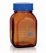 Бутыли имеют чёткую шкалу и большое окно для маркировки. Коричневый цвет стекла гарантирует защиту веществ, чувствительных к свету. Винтовые крышки синего цвета выдерживают автоклавирование до +120 °С.