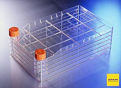Клеточные фабрики представляют собой многоуровневые флаконы для культивирования адгезионных клеточных культур в больших объемах. Клеточные фабрики — это неразборные, цельные конструкции, образующие закрытые системы, что улучшает газообмен и предотвращает перекрестную контаминацию. Различные варианты имеют от 1 до 40 слоев, что позволяет получать внушительные рабочие площади поверхностей. Каждый слой имеет площадь в 632 см², фабрики в 40 слоев суммарно имеют площадь в 25280 см².