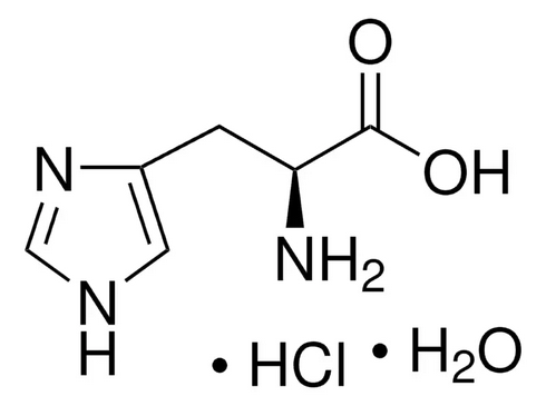 Синонимы: (S)-α-амино-1H-имидазол-4-пропановой кислоты гидрохлорид, L-α-Амино-β-(4-имидазолил)пропионовая кислота моногидрохлорид, L-α-Amino-β-(4-imidazolyl)propionic acid monohydrochloride.