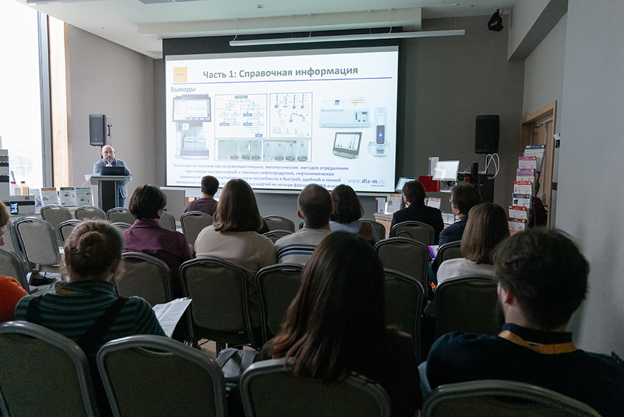 Основной сенсацией секции стала полная автоматизация технологии SARA, которая значительно ускоряет и упрощает анализ продуктов в нефтехимии. Теме был посвящен отдельный доклад, где демонстрировались возможности прибора определения насыщенных, ароматических, асфальтенов и смол в пробах мазута и битумных материалов.